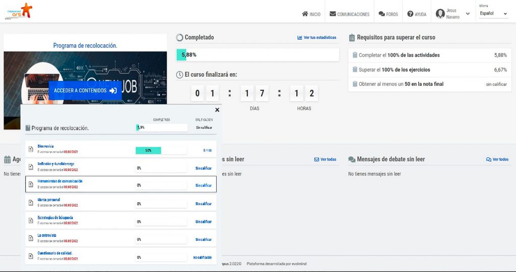 Acceso a nuestra plataforma de orientación con seis módulos de formación elearning